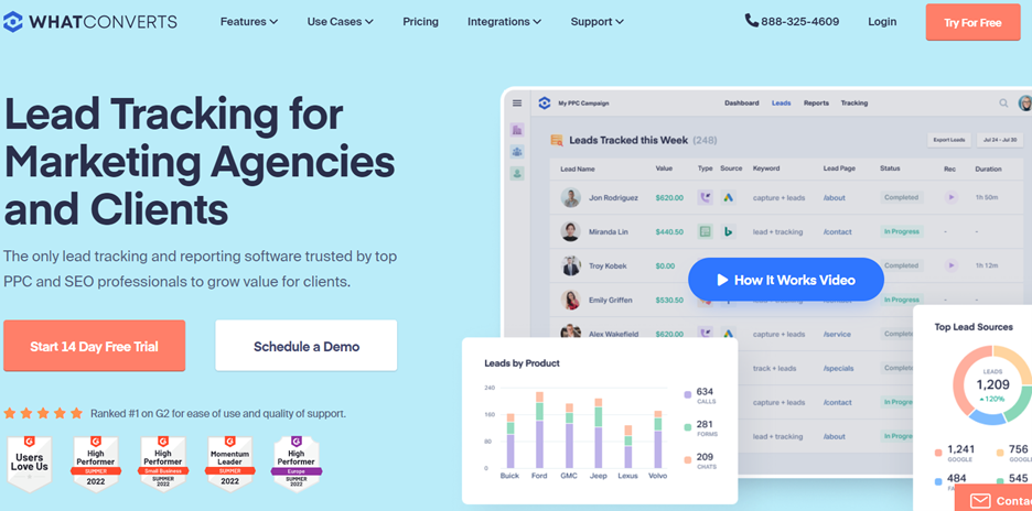 WhatConverts has been used by over 8,000 businesses in more than 70 countries since founded in 2014. It supports tracking across multiple channels and devices, with detailed reporting on each channel or source of lead. The platform also allows users to set up custom goals and track conversions against them. WhatConverts offers A/B testing, automated notifications, and CRM integration. These features make it easier for businesses to optimize their marketing campaigns and track customer journeys.
