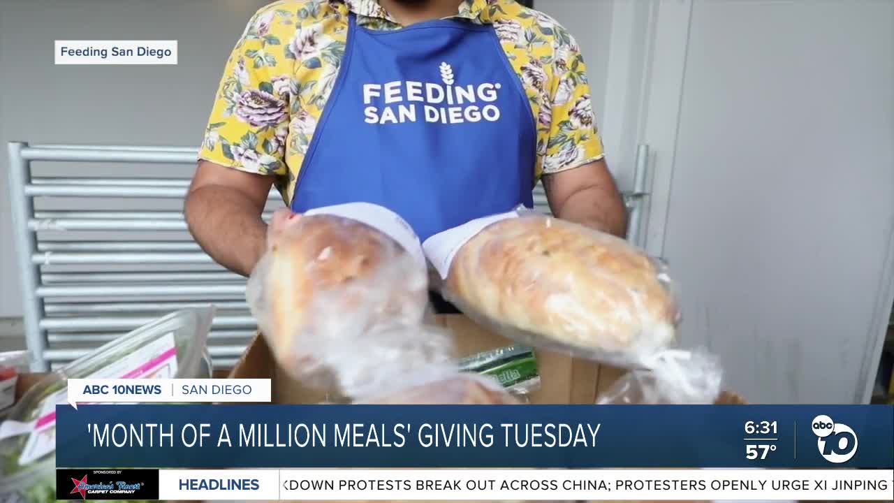 SAN DIEGO (KGTV) — ABC 10News will celebrate Giving Tuesday with an evening of answering phones at Feeding San Diego and accepting donations in real-time from the public.